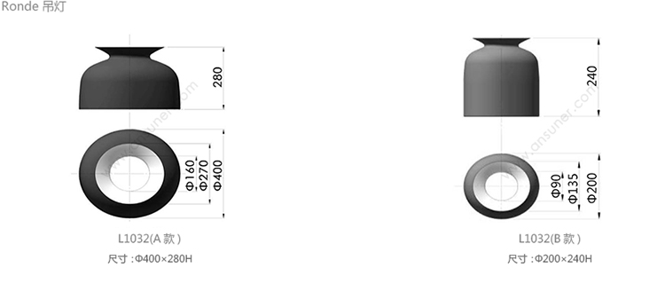 Ronde 吊灯 系列尺寸/示意图