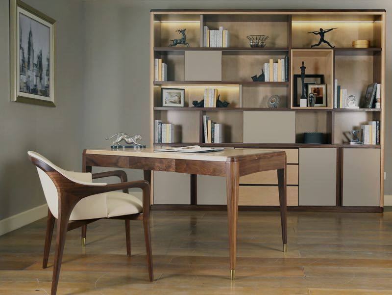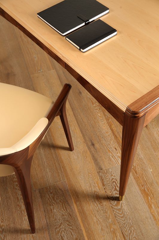 作品体现出简易美学的原理,工艺考究,造型优雅。自然木纹理办公桌共有三个抽屉,可以极大满足储物空间,并且在桌子的侧面还安置了电源插座,可以为移动设备及时、快速充电。它为年轻一代消费群体提供了兼具艺术美学、高品质工艺及实用性功能的产品。也满足了他们对轻松、舒适生活方式的需求。