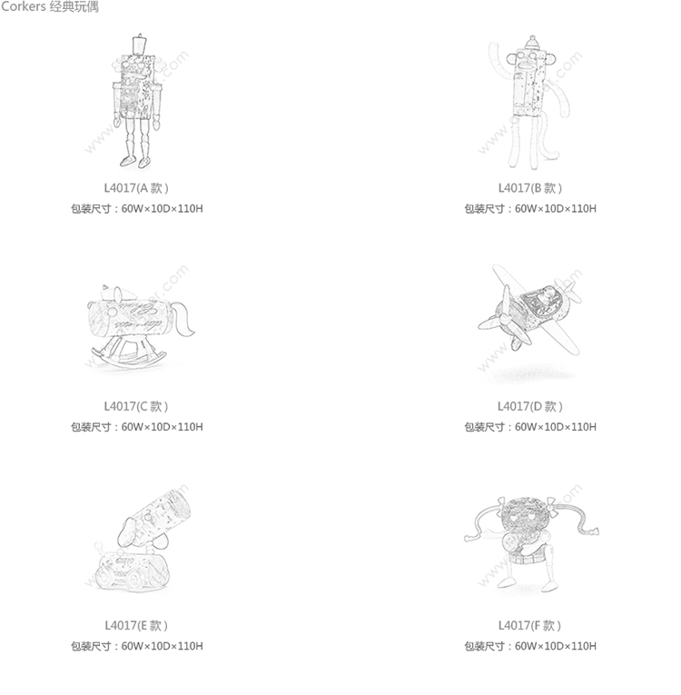 Corkers 经典玩偶 系列尺寸/示意图