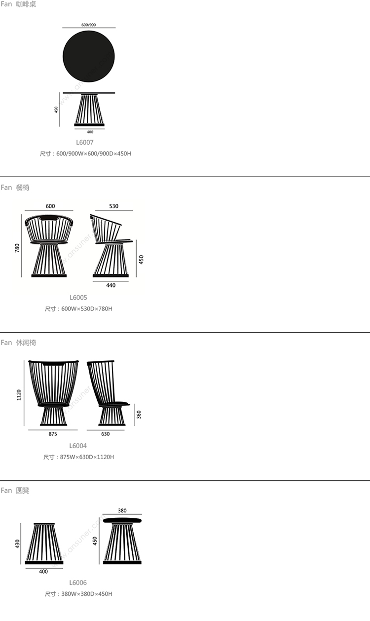 Fan 咖啡桌 系列尺寸/示意图