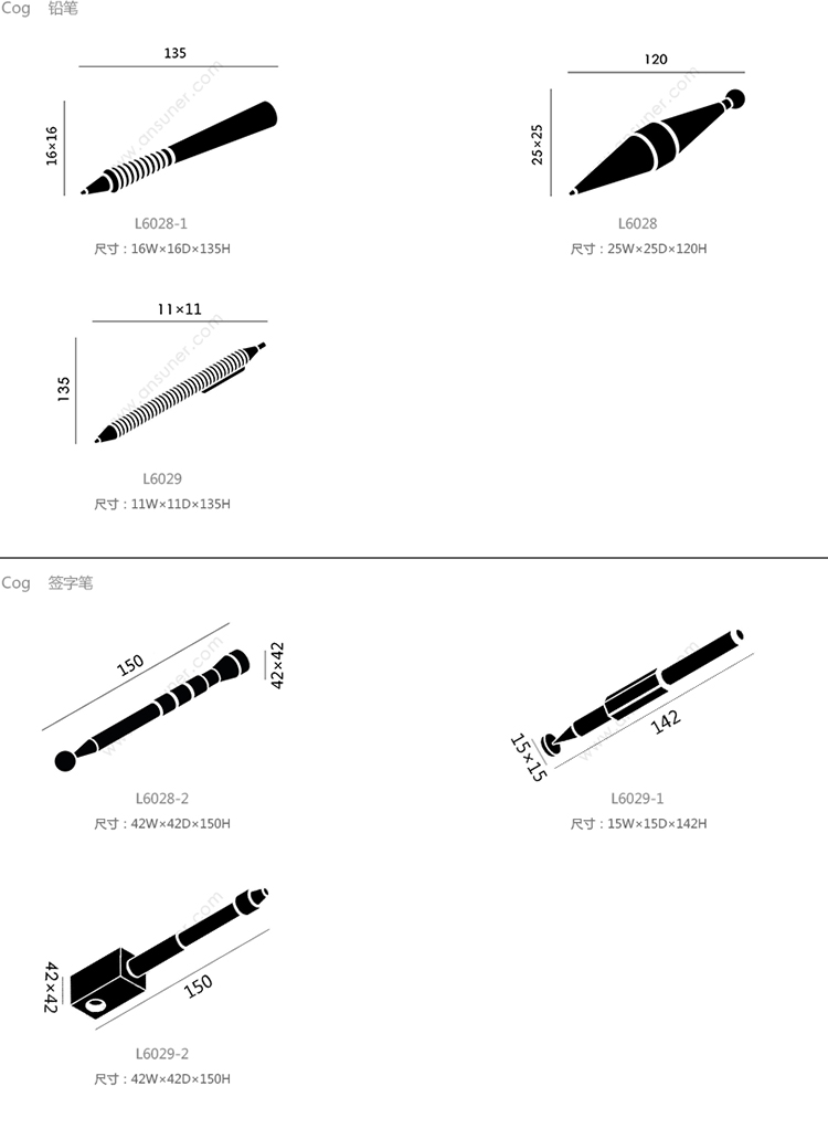 Cog 铅笔 系列尺寸/示意图