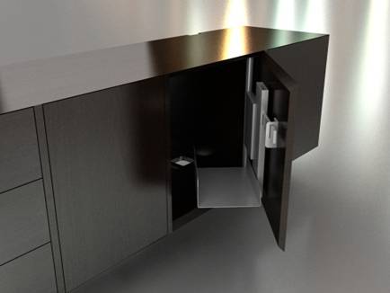 台底柜内置随门活动主机托架,使主机及线路的管理更人性化。