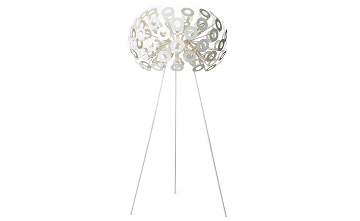 "Dandelion is a light and bright floor lamp in a modern design. It has been designed in 2004 by the designer Richard Hutten for the company Moooi. Dandelion resembles a dandelion with its round shape and the numerous small ramifications.The extraordinary design plays with its round shapes and with light and shadow. The light coming from the inside is broken on the individual branches that can be recognised from the outside by their silhouettes.The Dandelion floor lamp is only suitable for indoor use. It consists of powder-coated aluminium and steel."