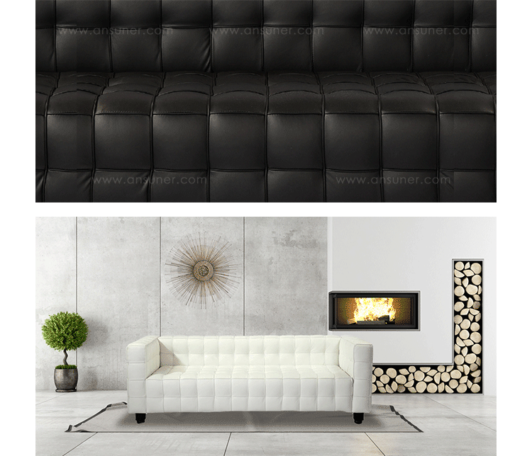 This high quality reproduction of the Josef Hoffmann Kubus Sofa features a handcrafted hardwood frame graciously lined with polyurethane foam.The surface is luxuriously soft to the touch, compliments of its premium 100%Top-Grain Aniline leather upholstery. This premium reproduction is generously proportioned to original full-scale size and cube count.Precision stitched & aniline leather piped tactile cubes create a thick body of cushioning that is so comfortable you’ll understand why this sofa has been a modern classic for nearly a century.For those looking for historic significance in midcentury modern furnishings,the Hoffman Kubus is a certain candidate.