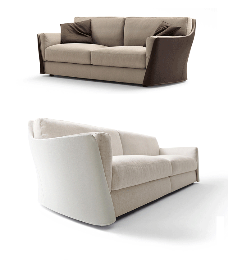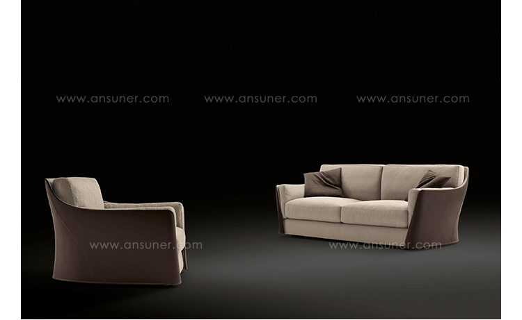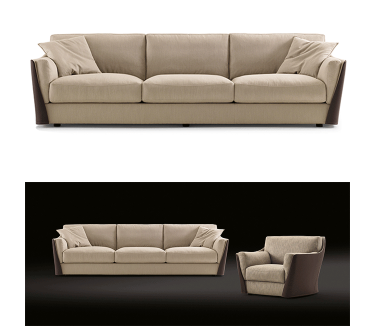 扶手椅和沙发的结构型钢的靠背,座位上的一个杨树胶合板和coldfoamed填充聚氨酯纤维覆盖。 靠背和坐垫上的鹅羽毛,最后在扩大聚氨酯的插入。 家具,完全可移动的织物或皮革,可以是一种颜色或两种颜色在皮革和内部外部织物或皮革。 一个在鹅的羽毛垫扶手椅和两个沙发的推荐.