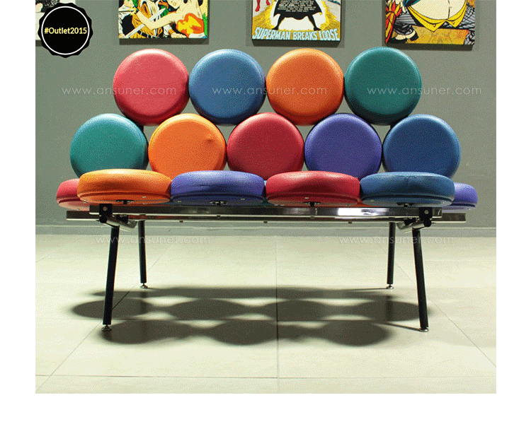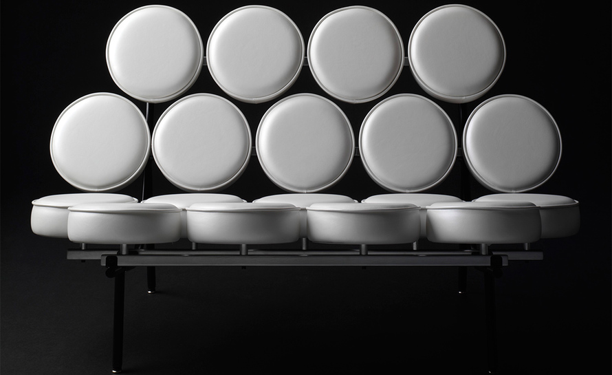 棉花糖沙发,英文名“Marshmallow sofa”,也叫鼓椅、向日葵椅,是设计师George Nelson在1956年设计的,这个设计用18个独立的圆形软垫组成座椅和靠背,“漂浮”在沙发框上。软垫的拆卸十分方便,可轻松完成保洁工作,并可交换各个软垫的位置以保持均匀的使用度,还可选择软垫的颜色,组合出全新的外观,因此很富于游戏感。米勒公司在推出这款产品的时候,说这个沙发是“第一款孕育着全新软椅概念的产品。我们觉得它不仅可以在家里使用,而且可以在与前者环境迥异的公共大厅内使用,它与众不同的外观无疑是公共场合的一道风景线。”软垫的色彩有单一色彩和多种色彩可选,适用范围很广,办公室、大厅、休闲室、客厅或书房等空间都可使用。