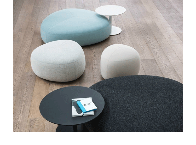 Kipu Pouf(Kipu 墩)的设计来着两个年轻的挪威设计师Torbjorn Anderssen和Espen Voll,灵感来自自然元素,被河水打磨的光滑鹅卵石,这就产生了三角形装卵石样的Kipu 墩。制作采用防霉实木框架、玻璃钢内胆、高密度海绵、高级布艺或皮革(颜色多选),软化所选择的颜色和面料,缝线细致的相交缝制,给人正式又休闲的感觉。其实用性非常广,可用于工作场所、非正式会议区、等候区、图书馆,也可以用在住宅项目,仿若舒适的"孤岛",可以不同高度、数量自由组合,即便不用来坐,单纯用来做艺术摆设都是非常高档的。