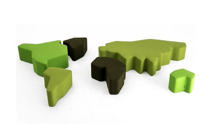Vincenzo Vinci设计的Ottomap Pouf(ottomap墩),灵感来自五大洲大陆板块地图形式,让你有着坐在世界之上的感觉,是一个功能性和艺术性的有机结合。制作采用防霉实木内框架或玻璃钢内胆、高密度海绵、进口羊绒布艺或皮革(颜色多选),非常的舒适。