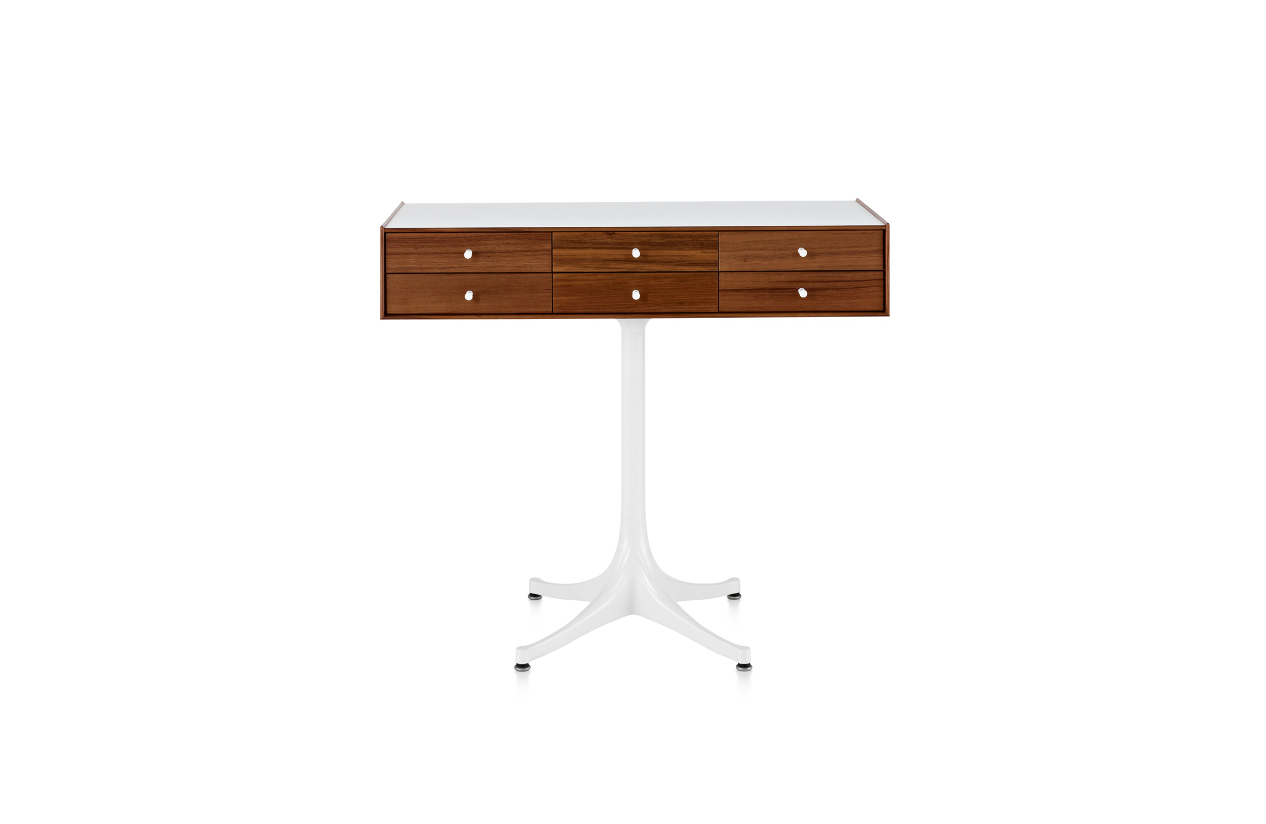 乔治·尼尔森(George Nelson)是美国极具影响力的建筑师、家具设计师和产品设计师,日本对George Nelson有着深远的影响。在他于1951年第一次到东京旅行,以及之后在那里的十几年,George Nelson迷上了日本的所有东西。这种影响最明显的的他于1952年设计的迷你箱。迷你箱的神奇处是可用来存放各种物品,是一个很多小抽屉小储物柜,方便您分类摆放各种生活物品。尼尔森设计的迷你箱最让人惊奇的是它几乎可以摆放在任何房间,无论是卧室,办公室,客厅等等任何您需要的地方,美观且不失和谐。每个抽屉都是木工们细心的安装设计,以保证高品质。抽屉采用胡桃或樱桃木皮贴面,基材为环保高密度板环保油漆喷涂、铸铝烤漆可调节脚架(4星级铝底座)、或玻璃钢一体成型脚架,抽屉贴心的配置有金属旋钮,方便打开与关上。
