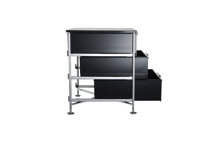 Mobil storage(移动储物柜)是由意大利国宝级设计师Antonio Citterio(安东尼·奇特里奥)设计的,他的设计跨越三大洲,已成为设计领域最活跃的渊博人士,1972年,他与著名品牌Arclinea厨具、flexform、Flos灯具等合作,1987年,为B&B设计的座椅获金罗盘奖.Mobil取自移动机制知名,带有随处收纳、移动变幻的多元满足,以多层抽屉式的收纳,搭配置物层版,不论是作为床边柜、工作室文件抽屉、生活收纳等,都非常合适。此外,另可选择滑轮式样、或是固定式座脚,自在搭配。