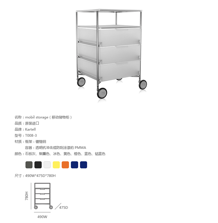 Mobil storage(移动储物柜)是由意大利国宝级设计师Antonio Citterio(安东尼·奇特里奥)设计的,他的设计跨越三大洲,已成为设计领域最活跃的渊博人士,1972年,他与著名品牌Arclinea厨具、flexform、Flos灯具等合作,1987年,为B&B设计的座椅获金罗盘奖.Mobil取自移动机制知名,带有随处收纳、移动变幻的多元满足,以多层抽屉式的收纳,搭配置物层版,不论是作为床边柜、工作室文件抽屉、生活收纳等,都非常合适。此外,另可选择滑轮式样、或是固定式座脚,自在搭配。