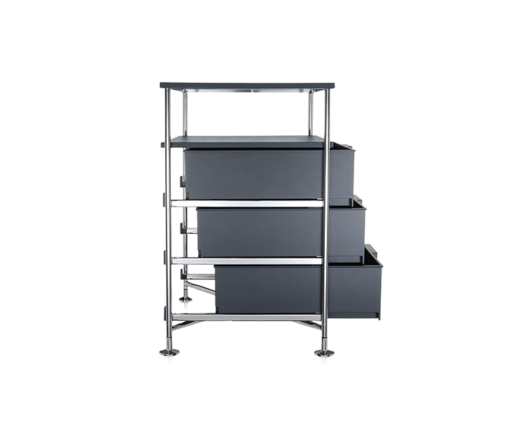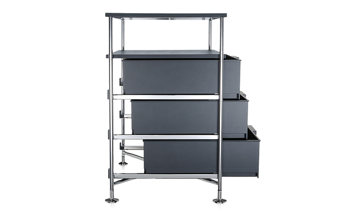 Mobil storage(移动储物柜)是由意大利国宝级设计师Antonio Citterio(安东尼·奇特里奥)设计的,他的设计跨越三大洲,已成为设计领域最活跃的渊博人士,1972年,他与著名品牌Arclinea厨具、flexform、Flos灯具等合作,1987年,为B&B设计的座椅获金罗盘奖.Mobil取自移动机制知名,带有随处收纳、移动变幻的多元满足,以多层抽屉式的收纳,搭配置物层版,不论是作为床边柜、工作室文件抽屉、生活收纳等,都非常合适。此外,另可选择滑轮式样、或是固定式座脚,自在搭配。