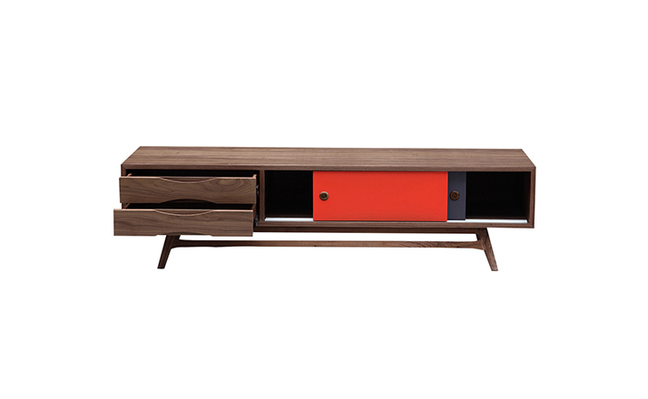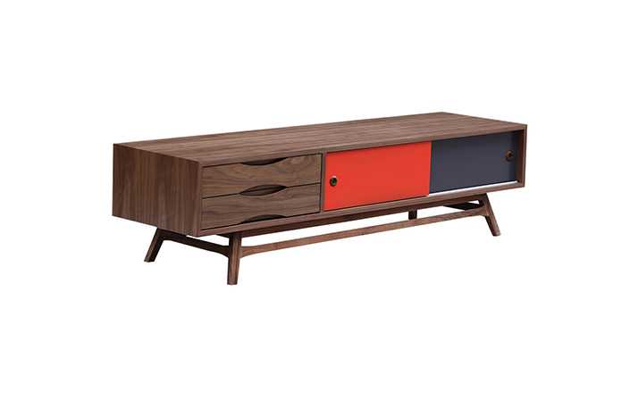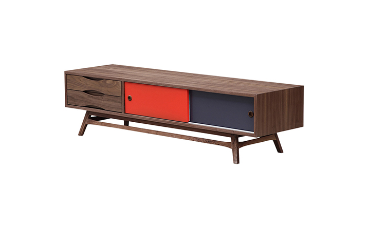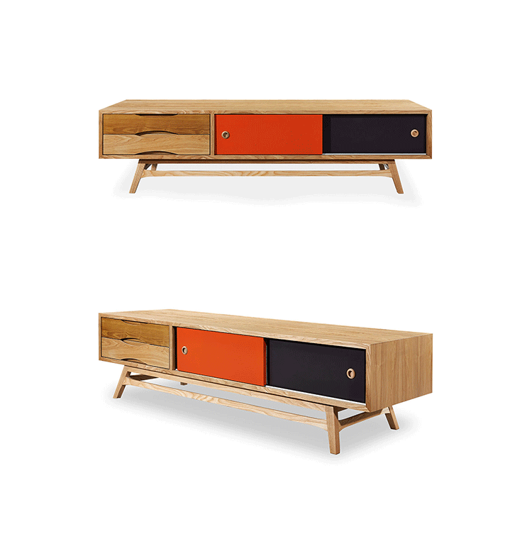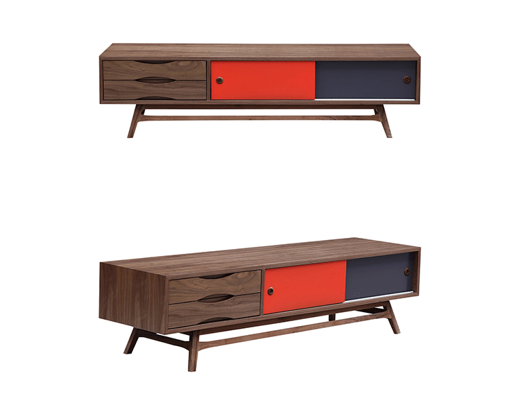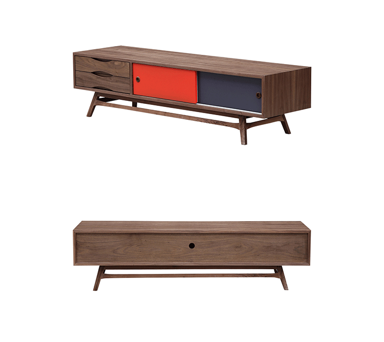 colorpop modern retro media cabinet(colorpop现代复古媒体橱柜)是Kardiel公司制作的经典实木家具。复古但永不过时的木炭是和橙色,结合美国核桃开创了20中世纪六十年代中现代主义的时代。在现代主义的存储家具上, Finn Juhl和 Arne Vodder 最先尝试胶木和天然木的组合运用。这是大胆的创新,他们结合传统的新鲜的新兴技术与现代主义的概念。他们通过这些色彩绚烂的产品所实现的是令人印象深刻的比例的平衡。流行的橙色和木炭色在现代主义风格上所达到的是受人尊的崇永恒。无论是直接挂在墙上,还是放在地面上,Color Pop就是能满足您理想的高度,并让电视机带着优雅的气质。制作采用精选MDF板基材胡桃木或水曲柳木皮贴面、胡桃实木或水曲柳实木脚架、环保油漆喷涂、做工精湛。