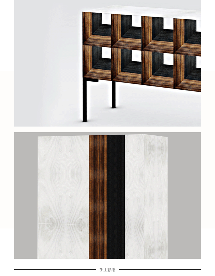 专家木大师精心设计这一块,一个精致的木装饰重建三维光学错觉。 树林里使用乌木、紫木香木材,木灰和增白桑托斯在内部块珍贵的红木。 拉长了一下铁腿黑色不透明涂饰剂完成这个引人注目的对象,为任何空间带来了永恒的魅力.