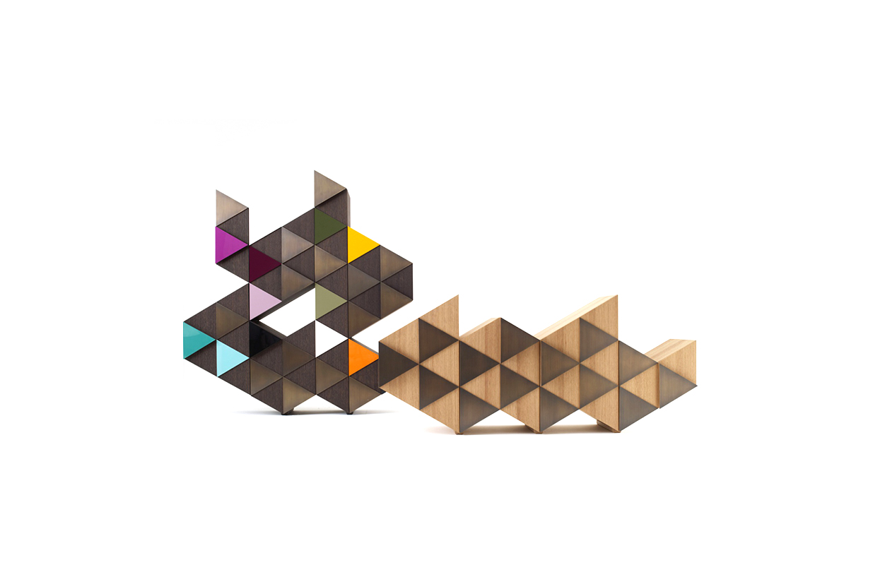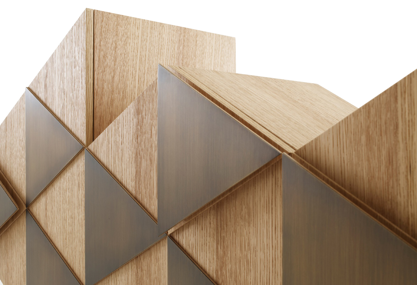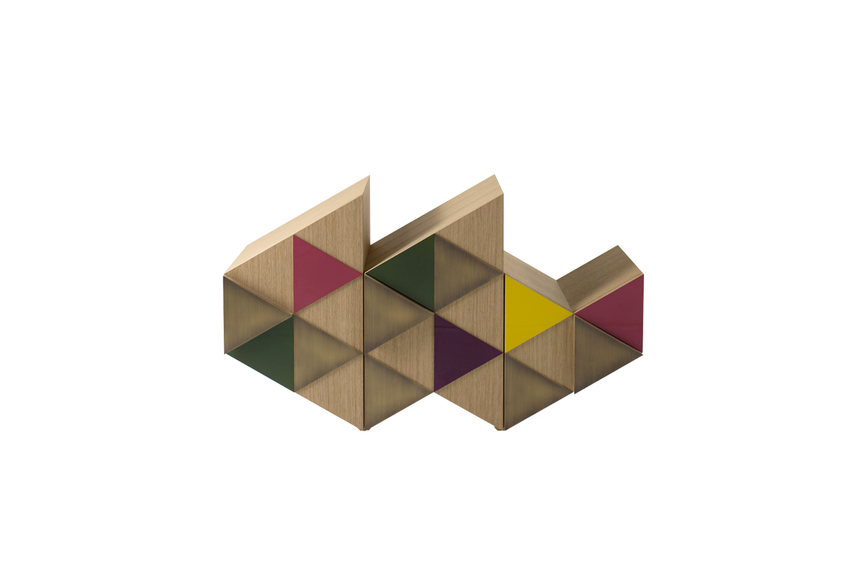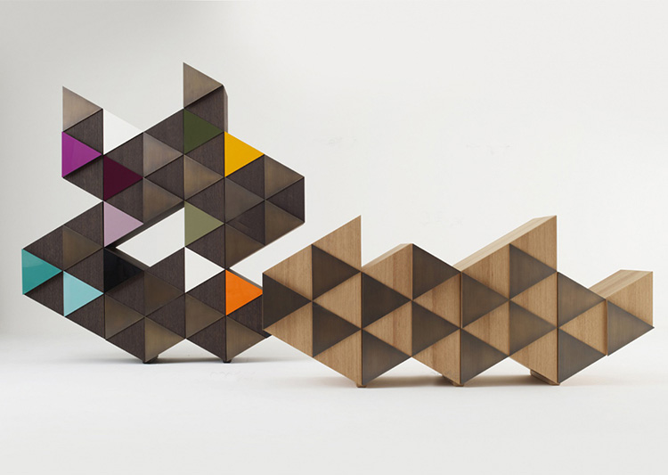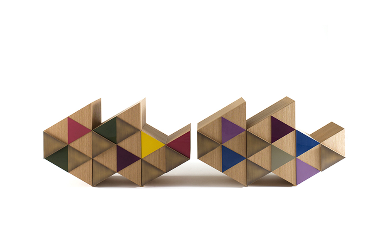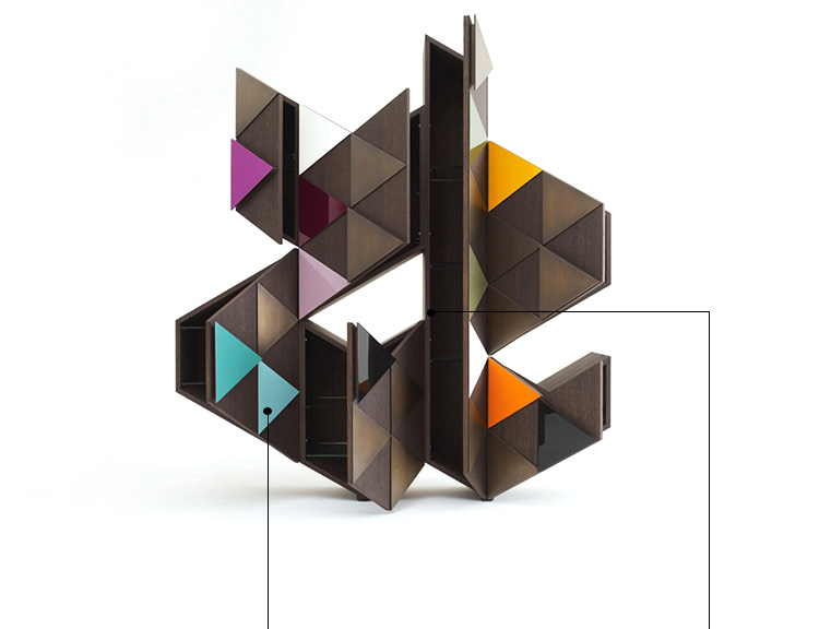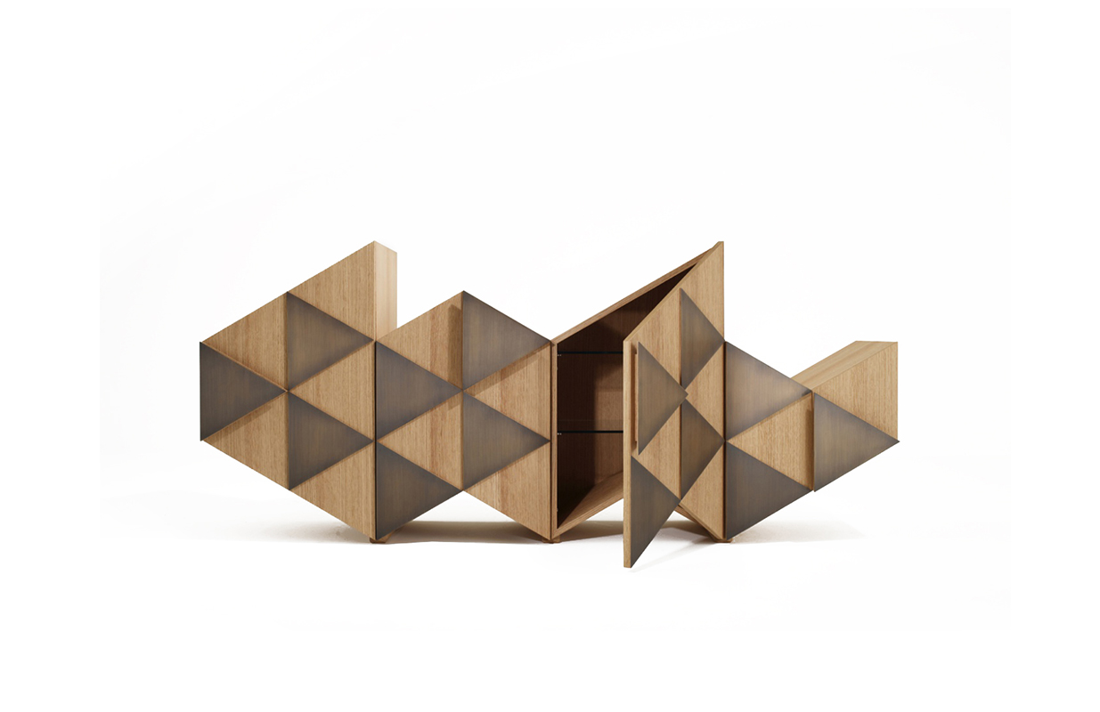 橱柜与雕塑不寻常的形状,配有门、装饰的三角形,塑造遵循几何方面的设计。