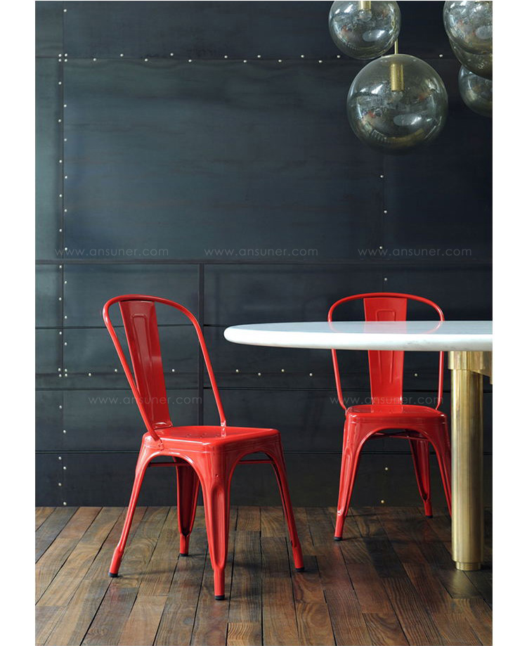tolix chair(tolix椅)一把有味道、有态度的椅子,据说它最开始被使用在一艘战舰的天气预报房间里,故事的真实性与否不得而知,但是不影响其成为享誉世界的著名设计家具,1934年由Xavier Pauchard设计,早期是作为户外用家具设计,力图展现法式慵懒而闲适的气质,经年而来被全世界时尚设计师所宠爱,从室外扩展到家居、商业、展示等多个用途,而此椅也不负众望在各类空间中均有上佳表现,特别是近年来与混搭、乡村、美式、怀旧、北欧简约、中式等主要装修风格搭配,都呈现出独特的韵味,也被时尚界赞为“百搭第一”椅,可以用在酒吧,餐馆,咖啡馆等等地方,之后通过改进,设计出有扶手版本的tolix armchair(tolix扶手椅),高背版本的tolix high back bar stool(tolix高背吧凳),宽背版本的tolix wide back bar stool(tolix宽背吧凳),及tolix bar stool(tolix吧凳)和tolix mini stool(tolix迷你凳)。制作采用进口冷轧钢、磷酸防锈处理、静电油漆喷涂工艺、坐面为木板或PU海绵坐垫,颜色可选。