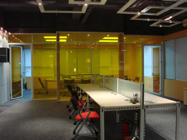 铝框中夹装玻璃,玻璃为12mm钢化玻璃,对空间起到良好的采光效果。整体风格简洁明快,非常适合现代时尚办公空间。