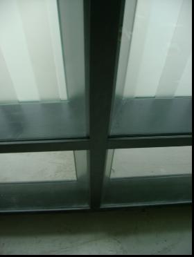 材料说明:银白色铝框(常规色)、12mm钢化玻璃(上下清玻,中间磨砂处理)设计说明:40款单玻做法需要注意的是,玻璃最好为全落地式,因单玻中横料过高,成本高又影响美观及稳定性。如客户要求分格,方案一:可考虑在玻璃上作处理,如贴玻璃纸、雕花、药砂处理等;方案二:用工字料来代替单玻小柱,再以工字料当做横料来处理,这样上下玻璃或板材才能得以固定!如图中做法! 我们推荐客户的做法是全落地式的,除非客户刻意要求分割。 |