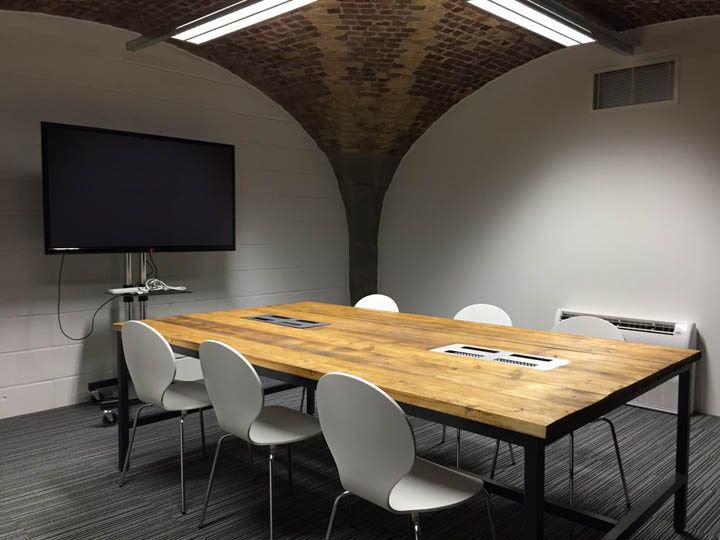 为了打造一个充满活力的企业家社群,内部空间被设计为可移动的模式以适应不断增长的企业需求。室内最为吸引眼球的建筑特色便是建筑自身的拱形天花结构,设计以此为空间布局并配以特殊的照明灯具,以彰显建筑特征。为了与传统的红砖拱顶相配,室内慷慨的选用1.2米宽的实木长桌为个人与团队合作提供充足的工作空间。