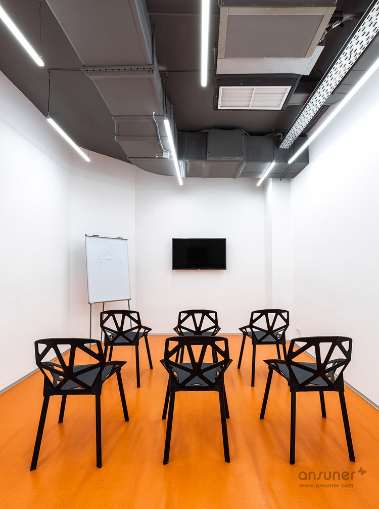 Underhub是乌克兰基辅本地的一家现代语言学校,同时这里还兼做联合办公空间,设有共享工作区、会议室和休息区。本案的设计灵感来自伦敦的地铁环境设计,将靓丽的导向色彩引入到室内设计中。如此充满创意的设计构想来自于基辅本地的一位才华横溢的建筑设计师 Emil Dervish。