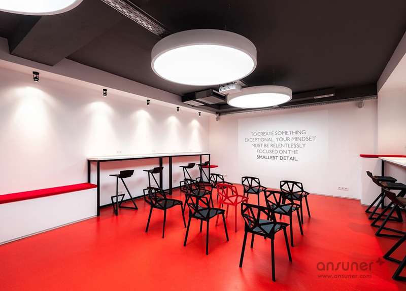 这个项目同时还设有联合办公的开放空间,一间用作演讲的大型会议室、以及一个舒适的休闲空间,童鞋们也可以一同享用这处休闲区,度过他们快乐的课余时间。