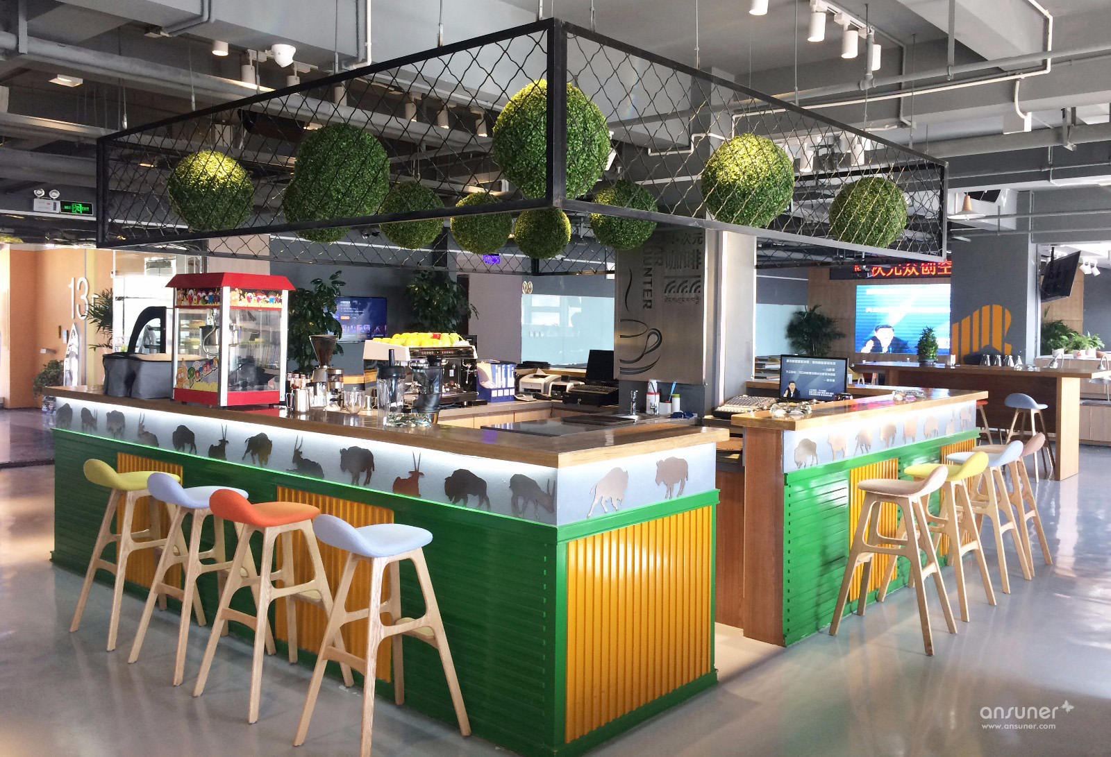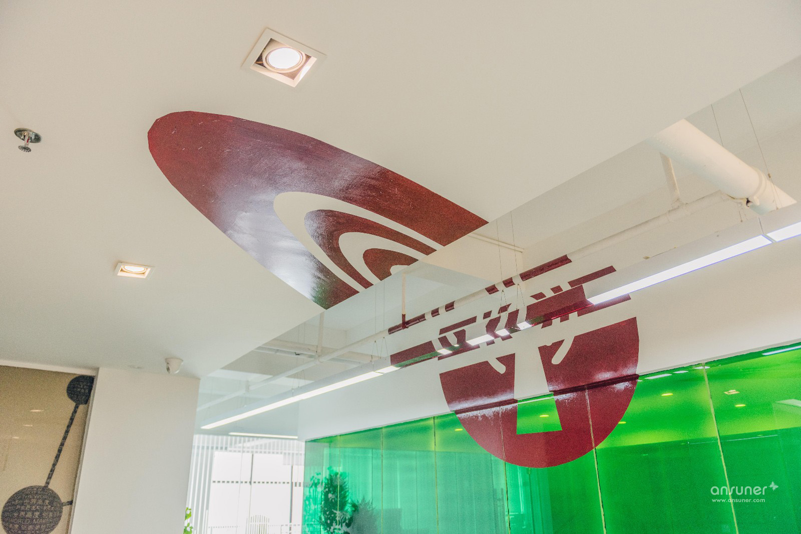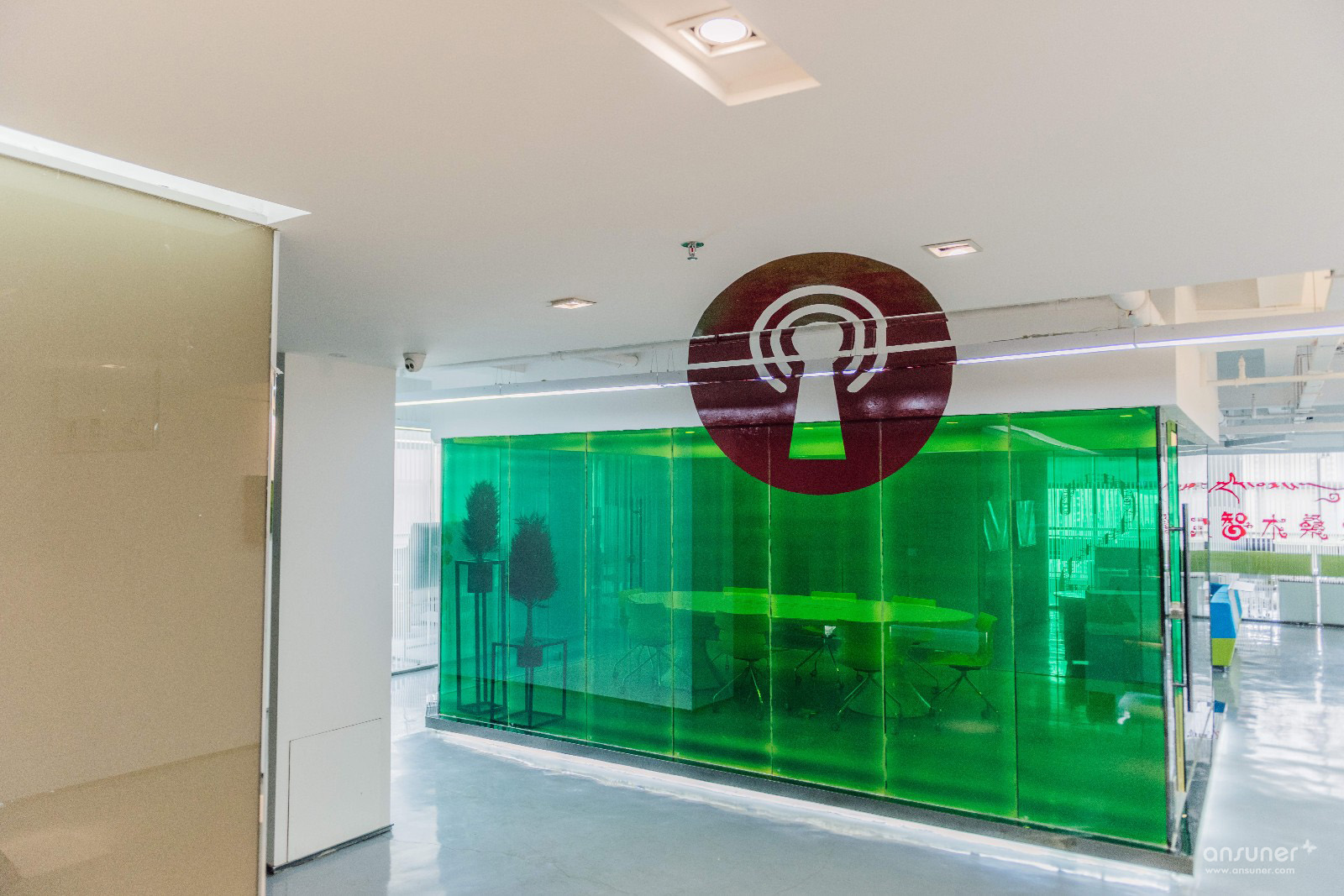 利用几何视觉错觉艺术,凸显众创空间独特化和年轻化。视幻只能在固定角度观看到整体图案,如果从其他角度观看,只能看到几何碎片。