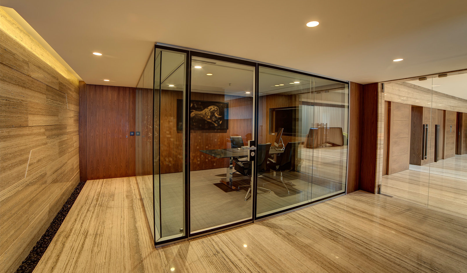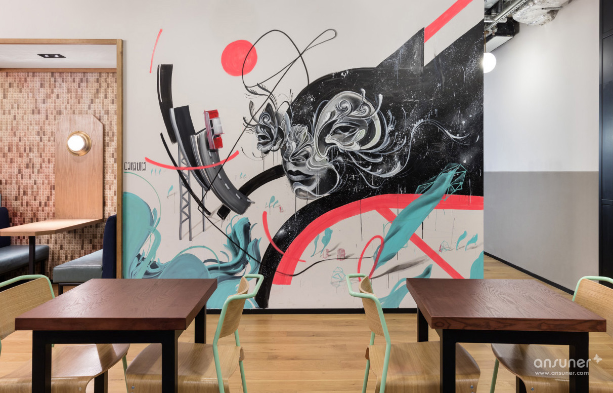 本案设计初期,乐尚的设计师们将公司自身“创意自由,规划严谨”的设计理念,将我们工作与客户交流的平台环境,最终分为两个追求的目标,其一展现并满足自身所需的平面功能外,将这一平面立体展开,实现了其二我们想要表达的空间感、层次感、质感,最终我们需要的乐尚在三维立体空间展现在我们面前。 初期的概念构想,一个时代的元素融入另一时代中,体现为取一种工业性质的混凝水泥墙体,恰到好处的融合到很现代的空间中。这两种质感不同的元素混合,精心的在设计师的深化思维中,重新进行了空间搭配,二者发生了很巧妙的发酵,同时,大面积采用玻璃隔断,让每个比邻区域通透感增强,与此同时,乐尚的抹茶绿及橙色标准色调,恰到好处穿插在每个区域中。而这些恰恰体现在不同场合下的整体视觉感,干净整洁的线条贯穿空间始终同时力求突出舒适性。各区域即独立又相互融合,亦可根据公司的使用和发展灵活调配。布局上层次分明,以一致的线条走向自然过渡到每个办公空间,以简洁的线条表现形式美,再配以恰到好处的灯光,营造出一个简洁明朗、自然通透的现代空间。用朴素的手法表现空间的本质,传达文化的内涵。营造出一个充满张力,移步逸景的办公空间。